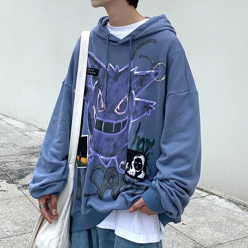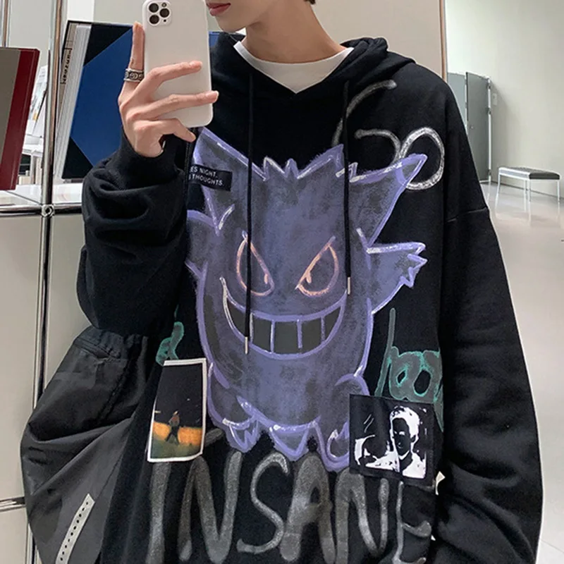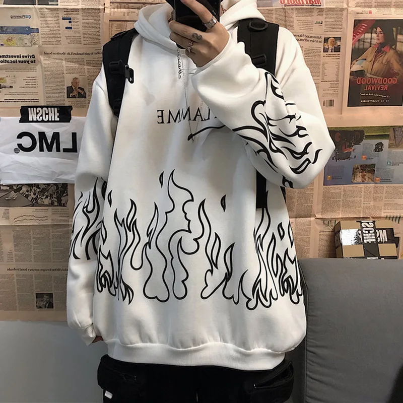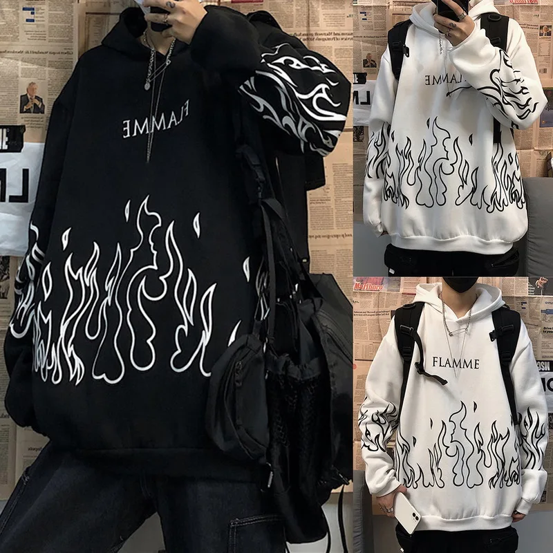 Толстовка мужская с принтом пламени, уличная одежда, пуловер в стиле оверсайз, худи в стиле Харадзюку, свитшот, Корейская уличная одежда, размера плюс, зима