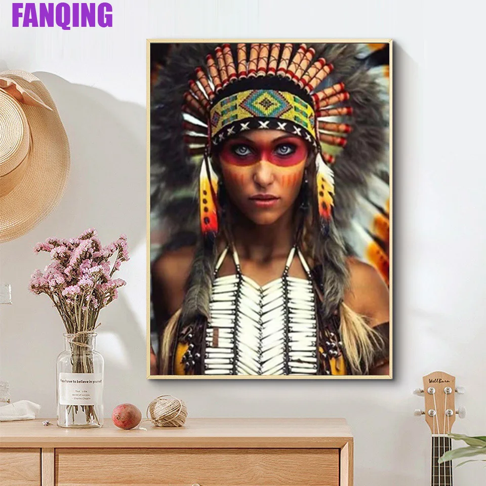5D алмазная картина «сделай сам», индейцы, племенные женщины, полная квадратная/круглая дрель, портретная вышивка, вышивка крестиком, домашний декор,