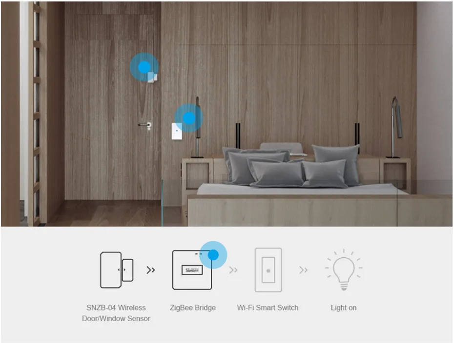 Хотите, чтобы светильник в коридоре выключился, когда вы закрываете дверь и выходите из дома? SONOFF воплощает вашу идею в реальность.