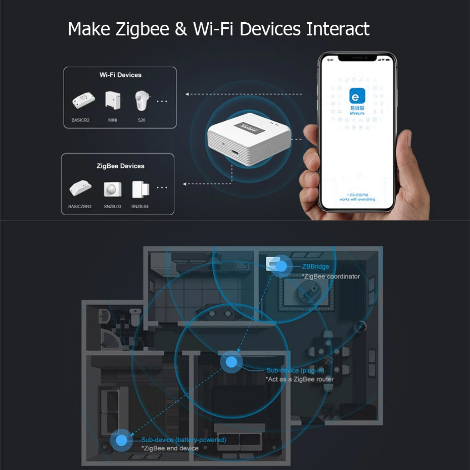 SONOFF ZigBee Bridge-это сердце умного дома, которое позволяет удаленно управлять различными устройствами и сенсорами ZigBee для мониторинга и контроля дома, И позволяет создавать умные сцены, чтобы смарт-Устройства Wi-Fi и ZigBee общались, чтобы получить доступ к умному дому и контролировать их все с помощью приложения eWeLink.Примечание 1: Sonoff SNZB 01/02/03/04 должен использоваться с мостом Sonoff Zigbee.Беспроводной коммутатор SNZB-01 Zigbee-это мини-умный коммутатор ZigBee, отвечающий на мост SONOFF ZigBee, который позволяет достичь цели связи между устройствами ZigBee (SONOFF BASICZBR3 DIY smart Switch и S31 Lite zb smart вилка) И Wi-Fi устройств.SNZB-02-это датчик температуры и влажности ZigBee, который может отслеживать и записывать изменения температуры и влажности в вашем доме, и все показания в реальном времени можно проверить в приложении eWeLink.SNZB-03-это датчик движения ZigBee-это очень удобное умное устройство для размещения в любом месте вашего дома для обнаружения движения и срабатывания сигналов тревоги.SONOFF SNZB-04-это беспроводной дверной/оконный датчик ZigBee two-in-one, который можно поместить в вашу дверь или окно, чтобы сообщить вам с оповещением о том, открыта или закрыта ваша дверь или окно.