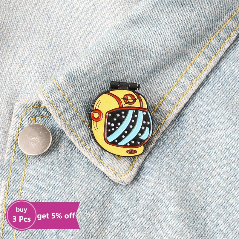 МужскаяЖенскаяМужская эмалированная брошь в виде комиксов на рюкзаке
