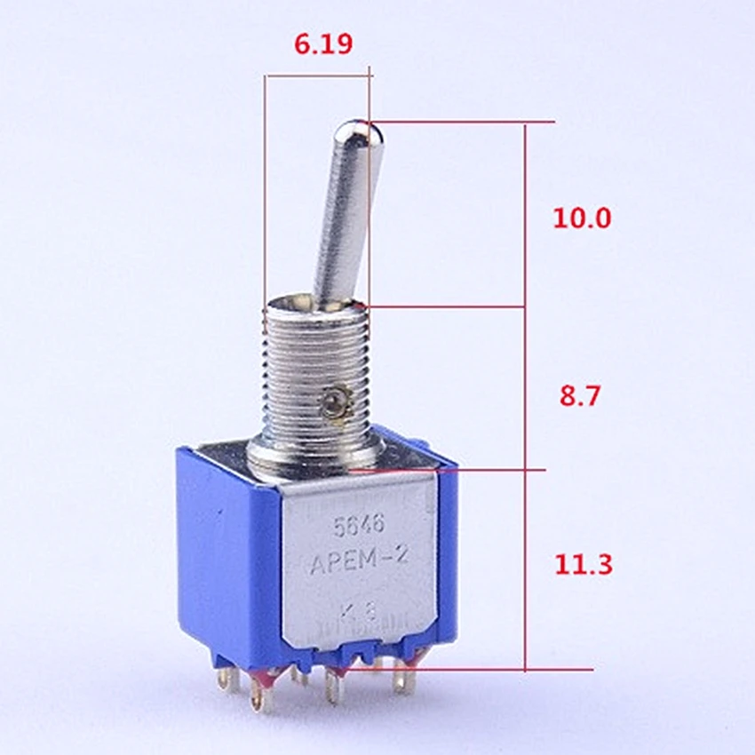 1 шт. APEM ON-ON 2-сторонний мини-переключатель DPDT для электрогитары или баса США (происхождение)
