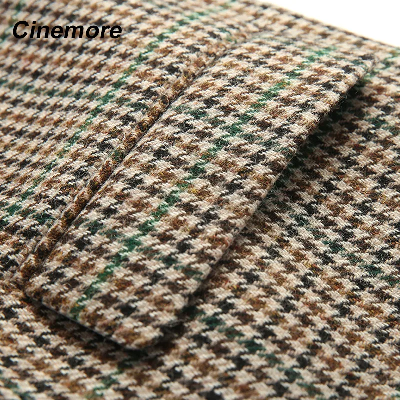 Новинка 2021, клетчатый женский пиджак, тонкая британская ретро-куртка на пуговицах с отворотом, Женское пальто, топ, 82192