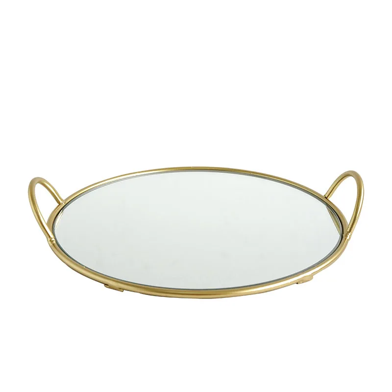Подносы для хранения с золотой ручкой, стеклянный зеркальный поднос для ювелирных изделий, косметический стенд, туалетный столик, контейнер для средств по уходу за кожей, домашний декор