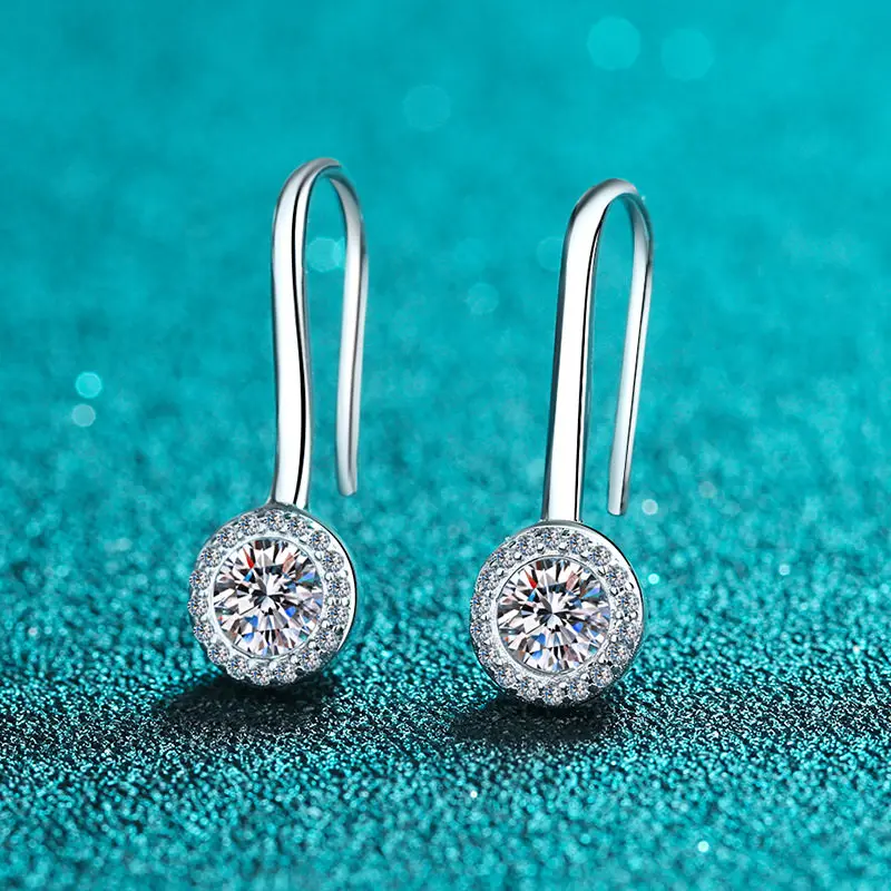Серебряный цвета, всего 1 карат алмазов пройденному тестированию отличный крой Высокая четкость D Цвет Круглый Синтетический бриллиант, свисающие серьги для женщин, серьги