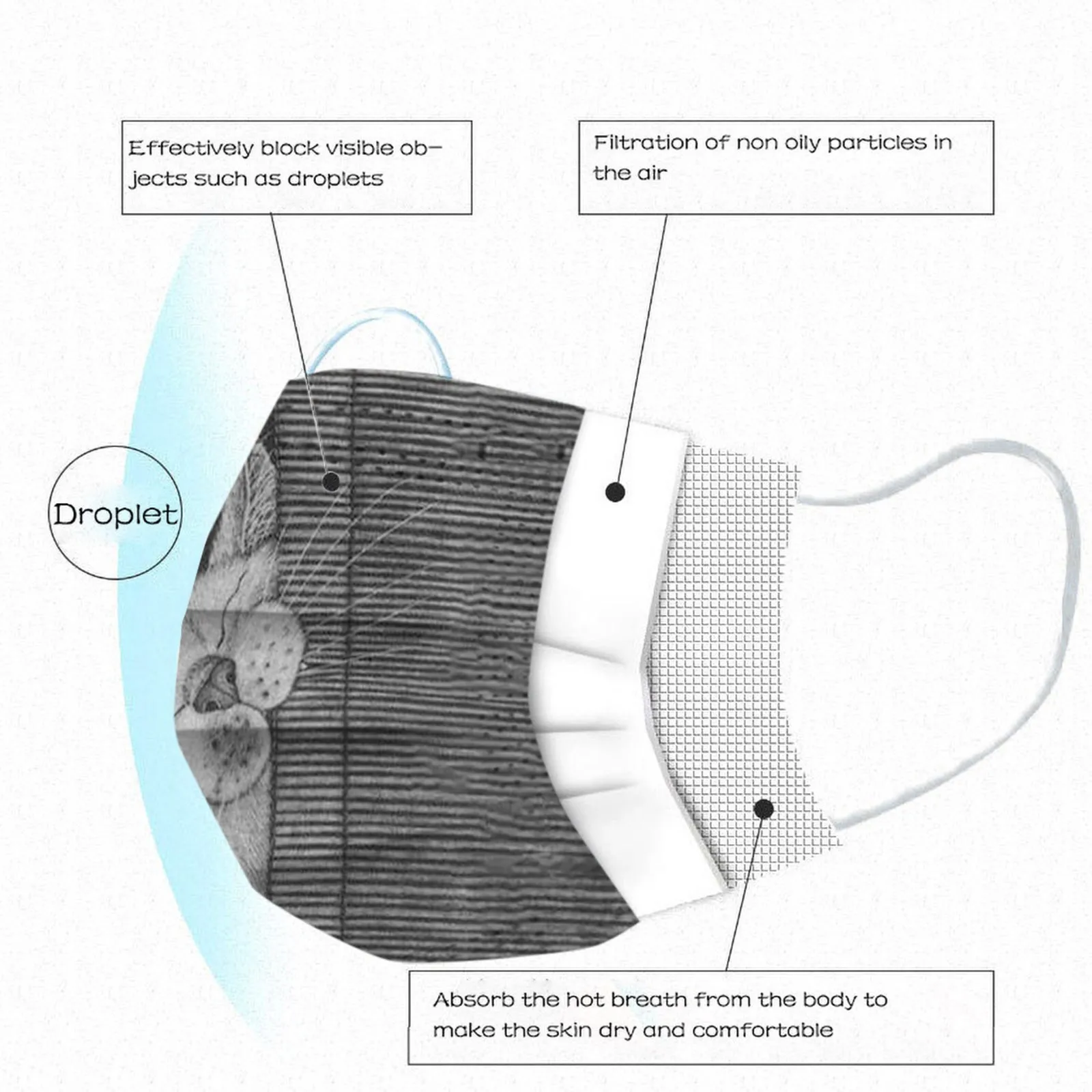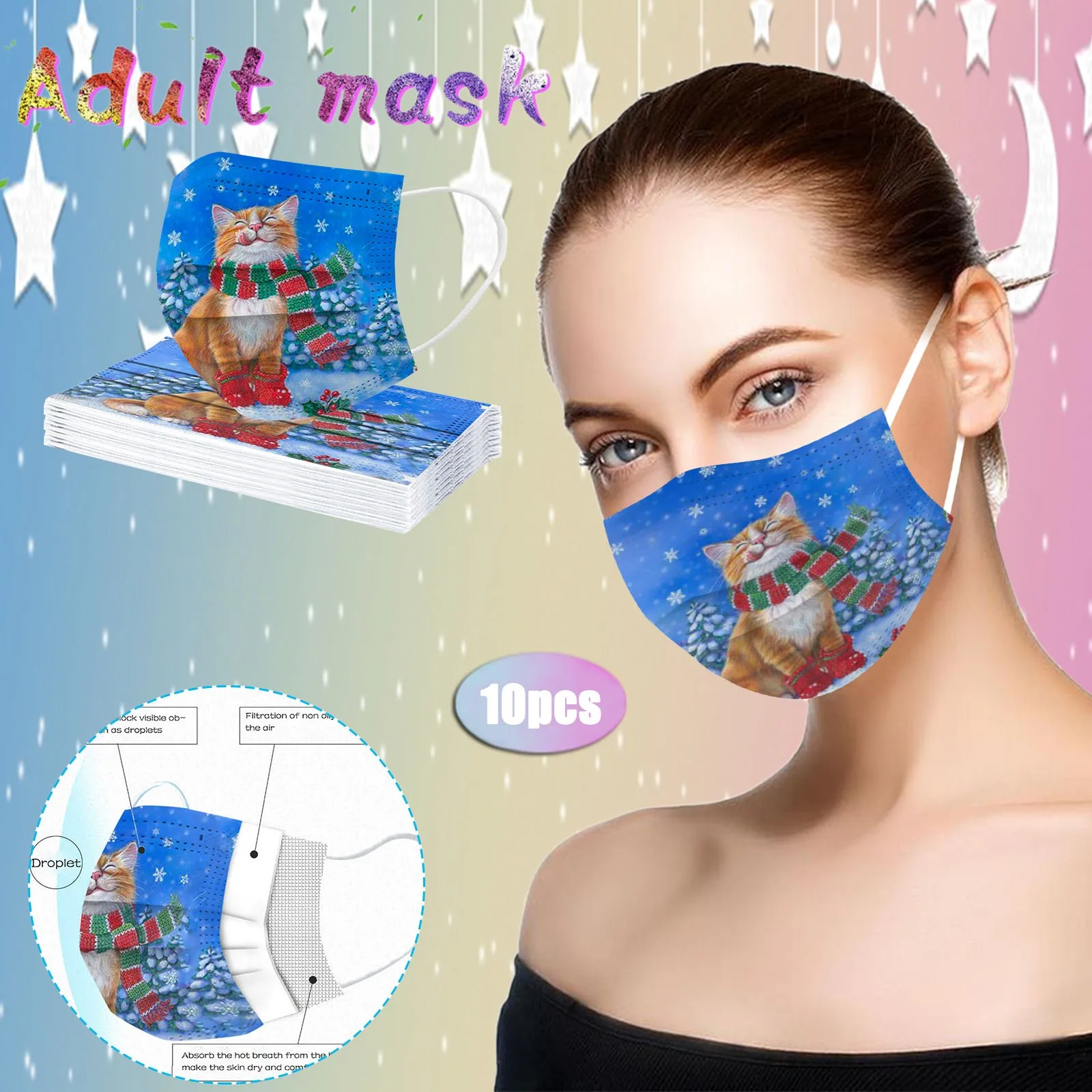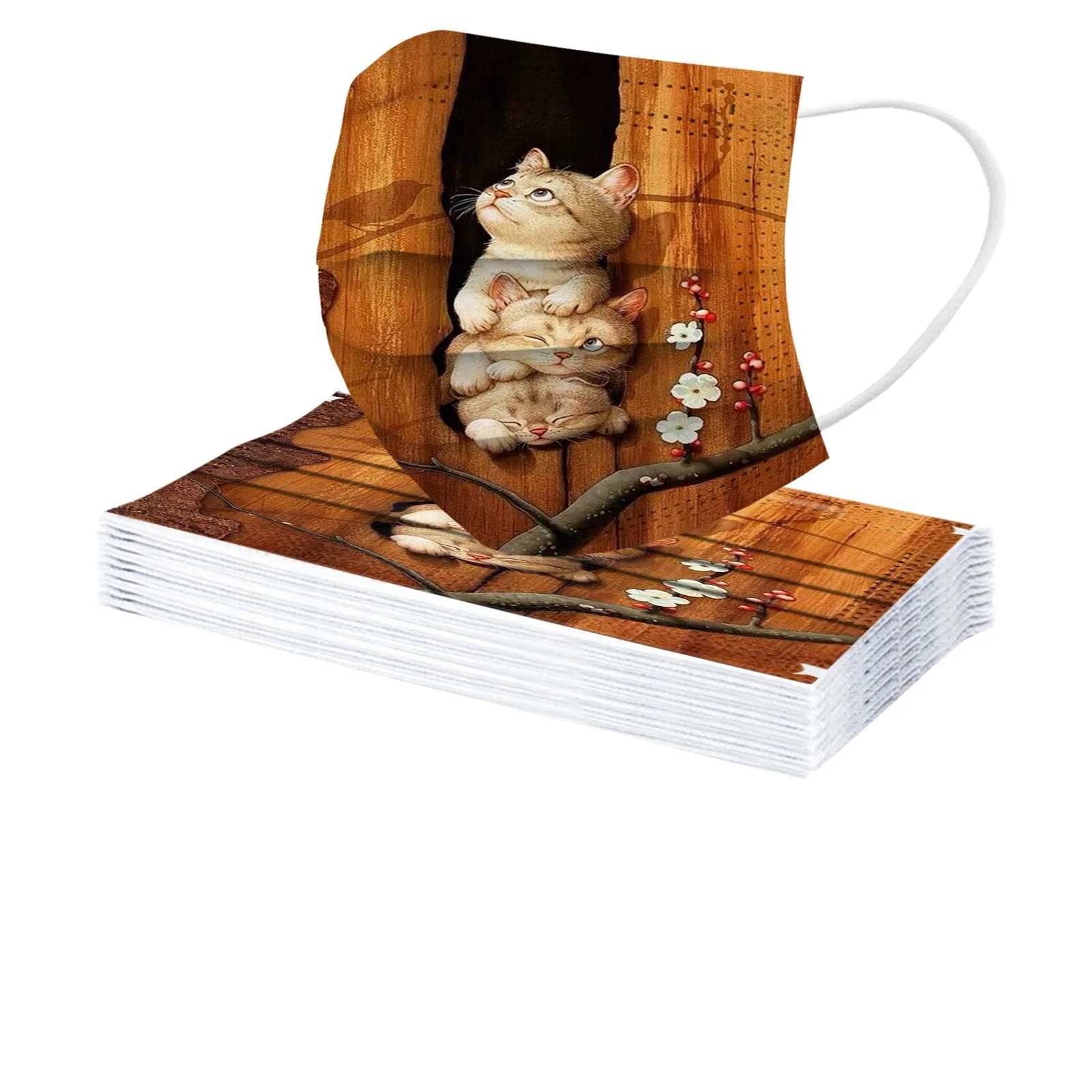 10 шт., одноразовая маска для косплея, с 3D-принтом кошки