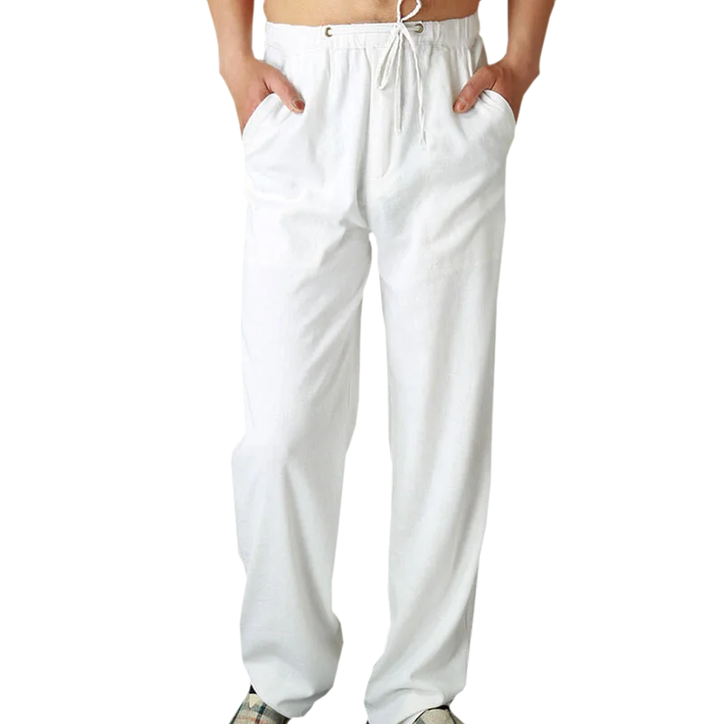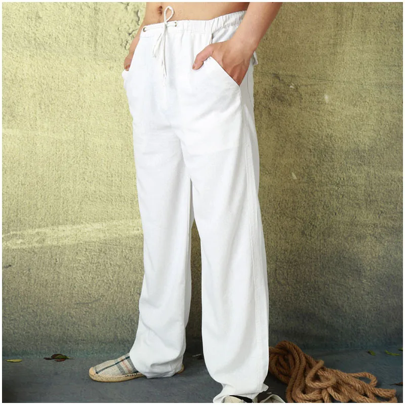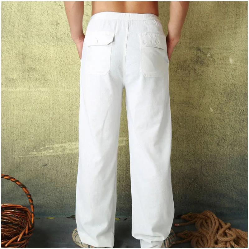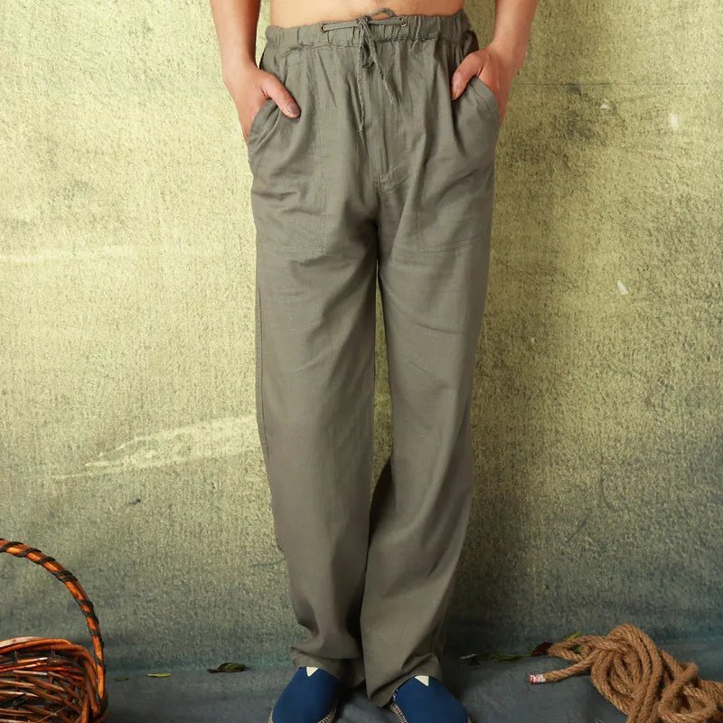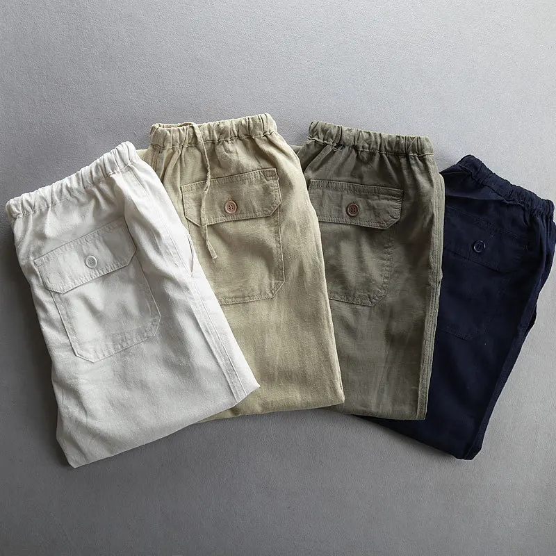 Брюки мужские прямые из натурального хлопка и льна, с эластичной талией