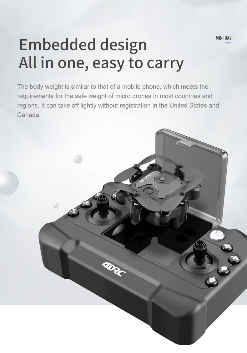 Тип товара: мини-модель В разложенном виде: 9,5*9,5*3 см Складка: 5*5*3 см Материал упаковки: цветная коробка Размер упаковки продукта: 26*18*6 см Вес посылка: 300 г В комплект входит: Квадрокоптер * 1 передатчик дистанционного управления * 1 батарея * 1 лопасть вентилятора * 4 USB кабель для зарядки * 1 руководство * 1 держатель на мобильный телефон * 1 (не входит в стандартную версию)