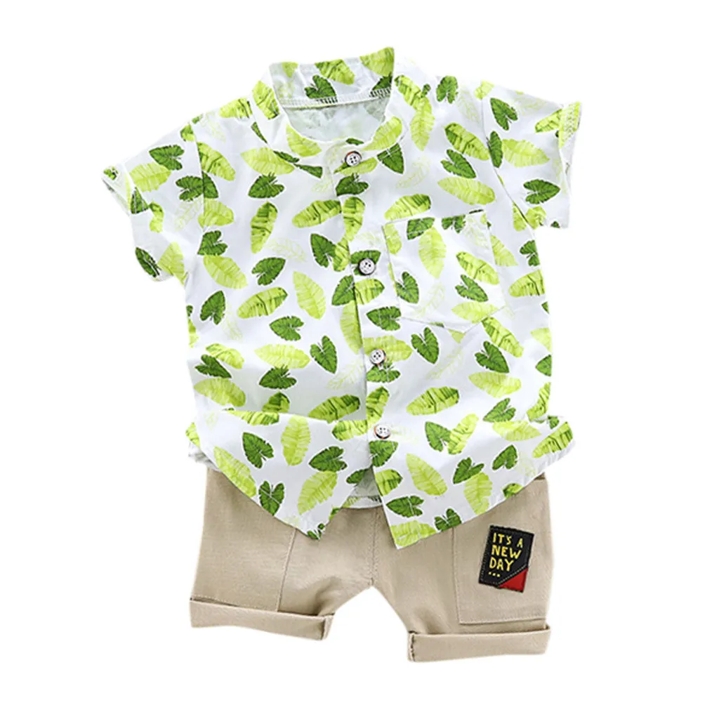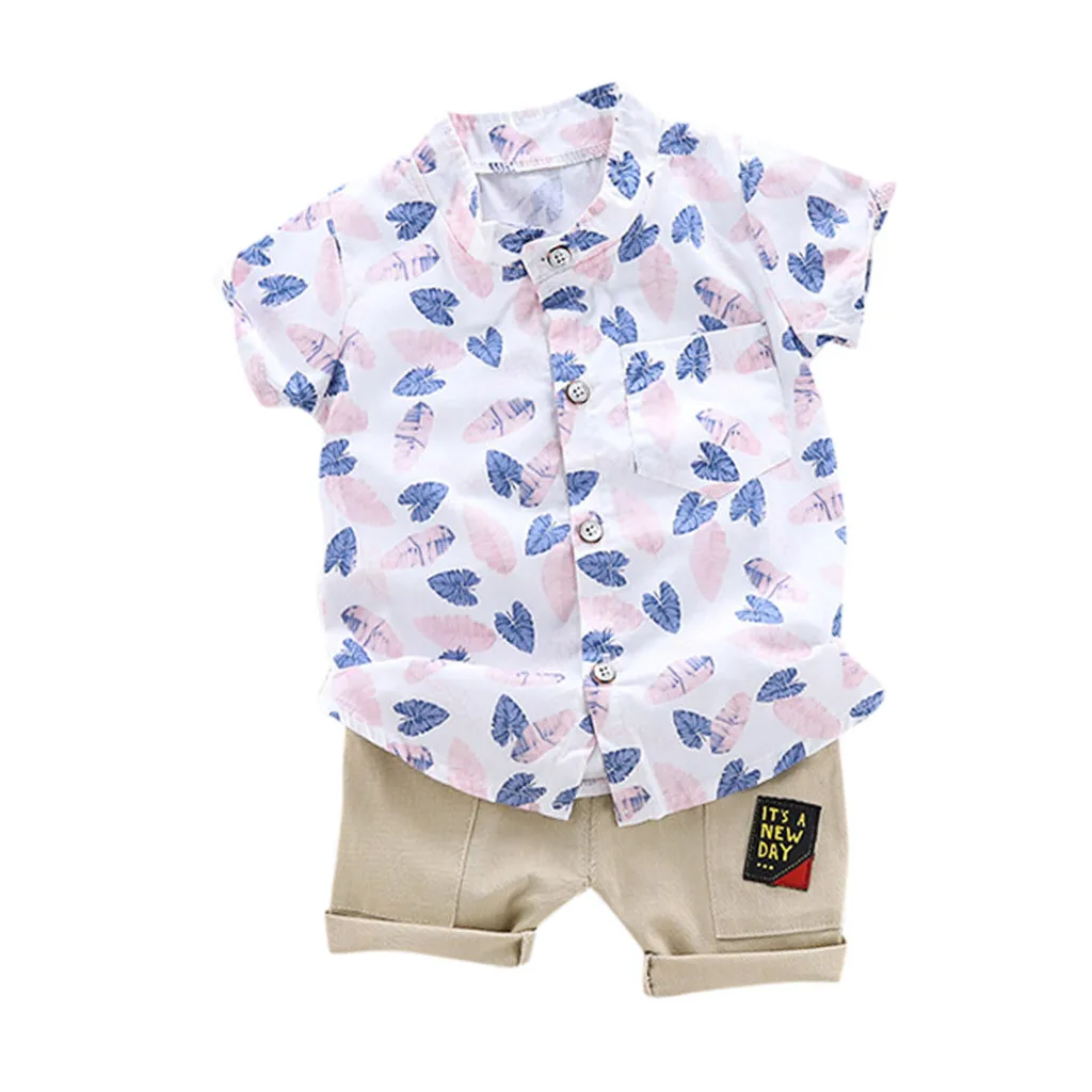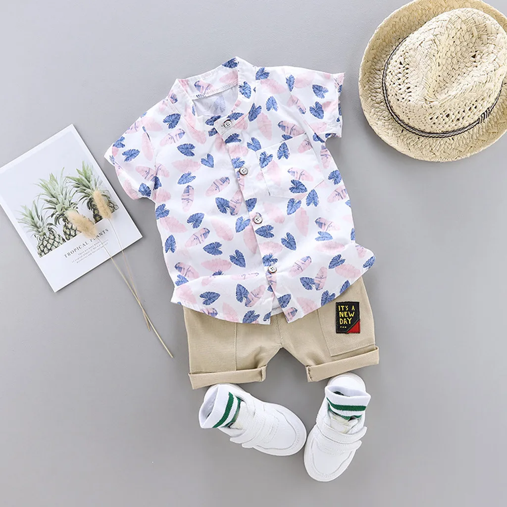 Летняя одежда для маленьких мальчиков, модная одежда для мальчиков, деловой костюм для маленьких мальчиков, Цветочная рубашка, топы и шорты, комплект одежды для мальчиков От 1 до 4 лет