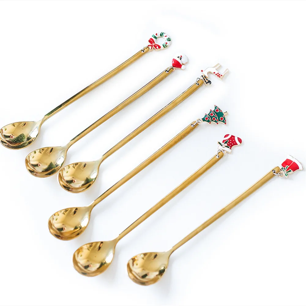 Десертная ложка для кофе, рождественские ложки из нержавеющей стали...