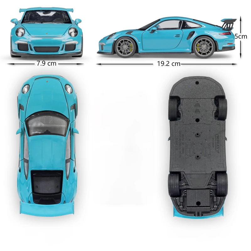 1:24 Porsches 911 GT3 RS синяя модель автомобиля из сплава, имитация автомобиля, коллекция украшений, подарок, игрушка, литье под давлением