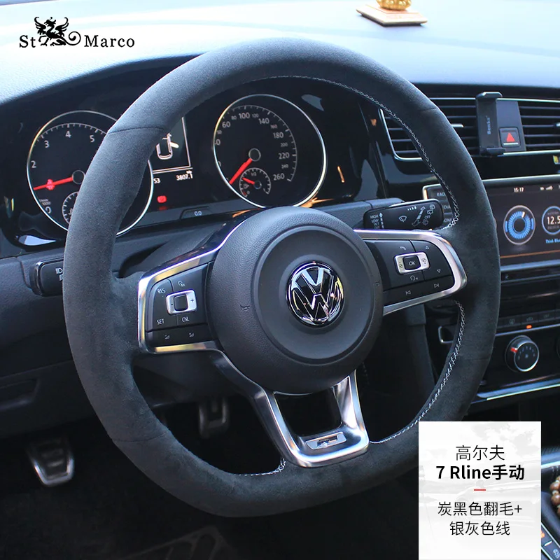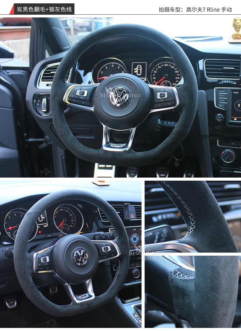 Замшевый кожаный чехол на руль для Volkswagen Golf 7R-line, сделай сам, чехол для автомобильного колеса, аксессуары