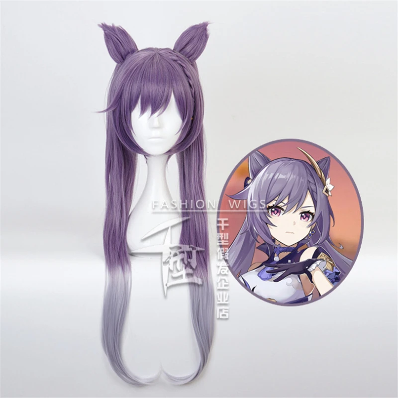 Парик Keqing из игры Genshin Impact Project, парик для косплея, парики для игры в пудру, пурпурные волосы с градиентом, парики на Хэллоуин 1:1, 90 см