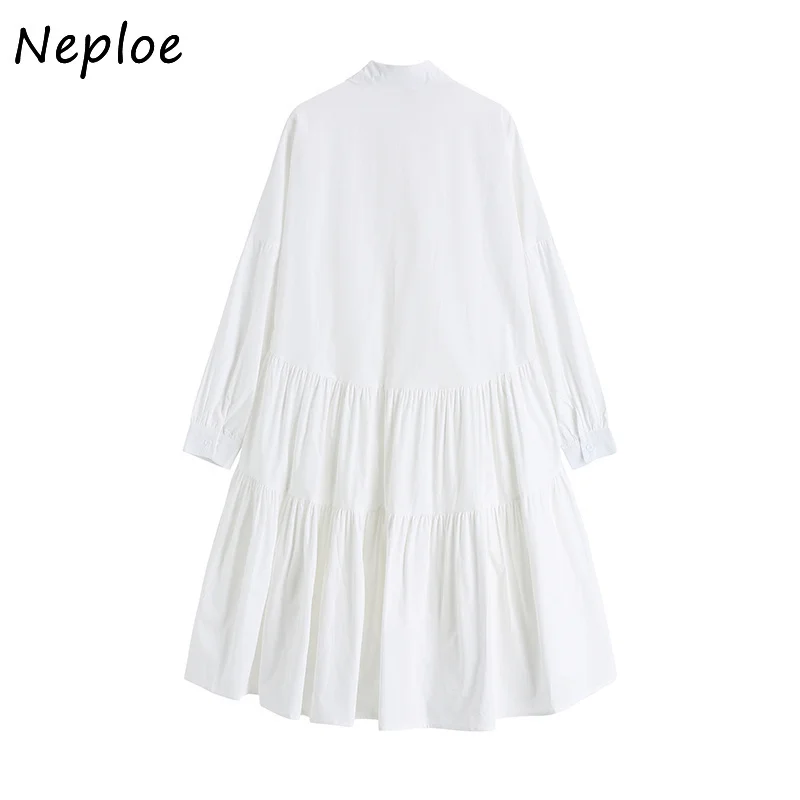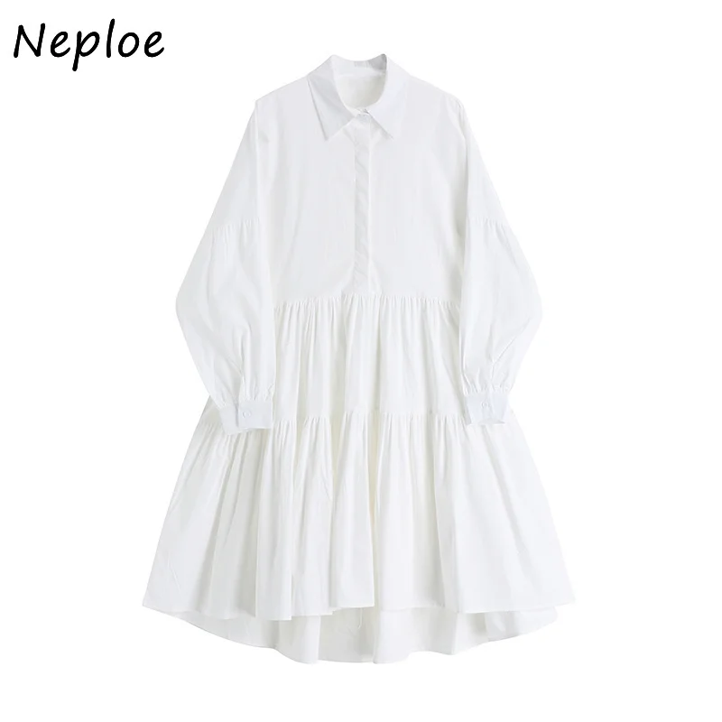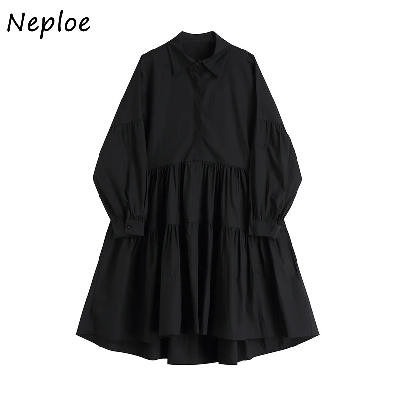 Платье Neploe с отложным воротником и длинным рукавом, однотонное женское облегающее платье трапециевидной формы с высокой талией, весна 2022 г.
