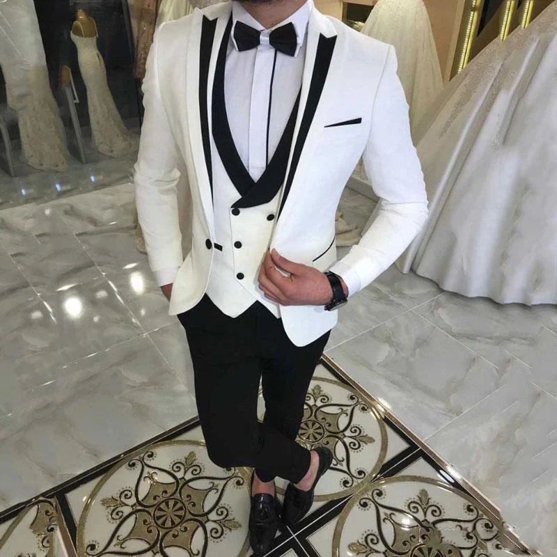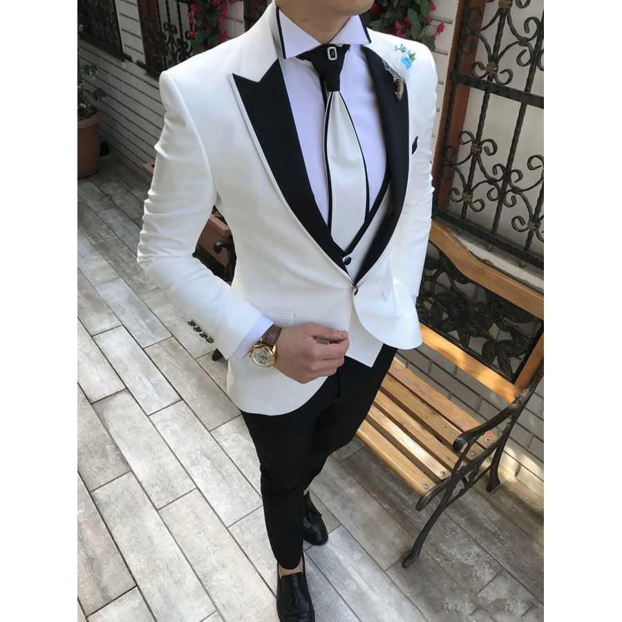 Новинка 2021, белые костюмы для свадьбы, смокинги для жениха, одежда для жениха, наряд для шафера с острым лацканом, мужские блейзеры из 3 предметов
