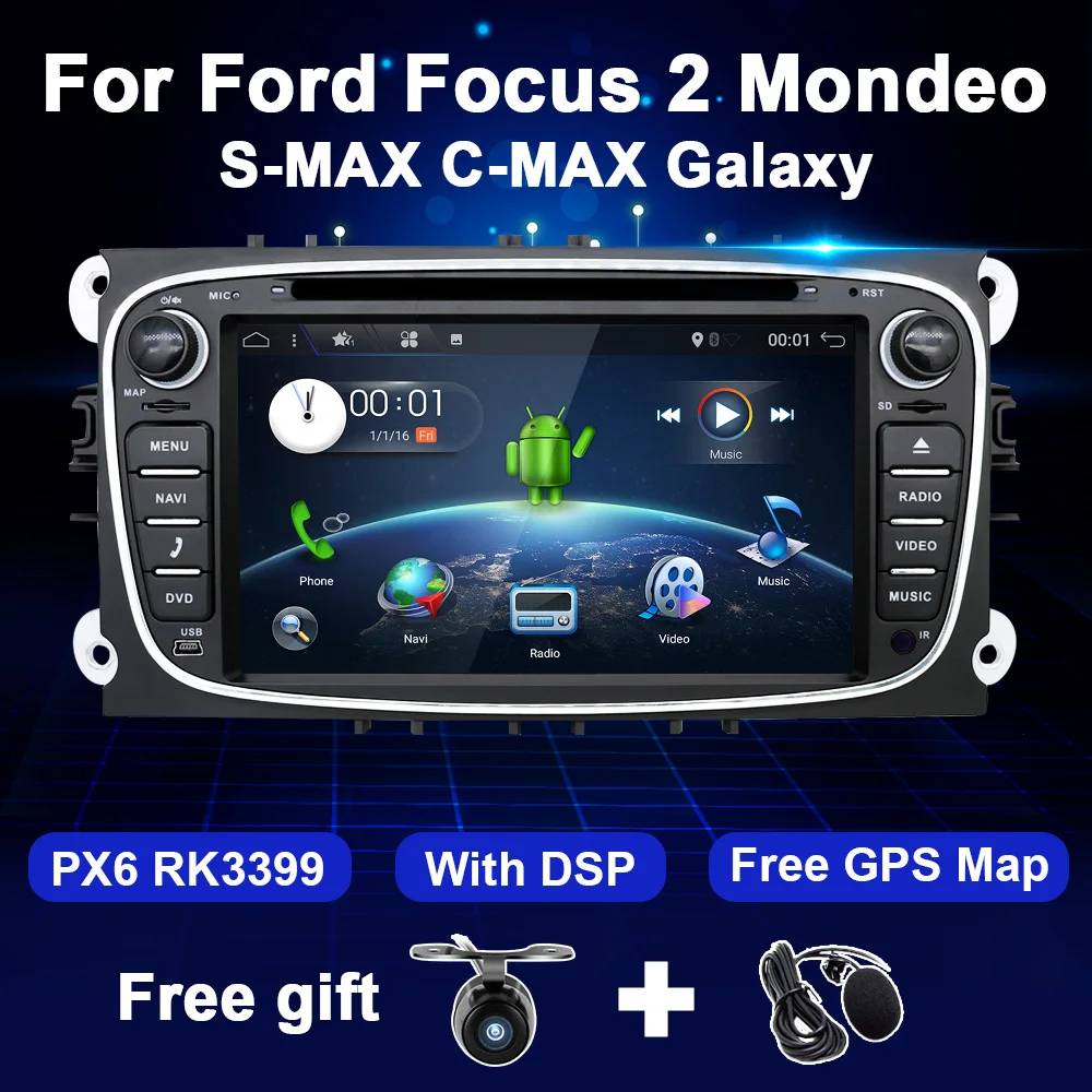Автомагнитола 2 Din, Android 10, мультимедиа, радио, GPS, навигация, DVD, автомагнитола 2 Din, для Ford Focus 2 II, MK2, Mondeo S-MAX, C-MAX, Galaxy Kuga