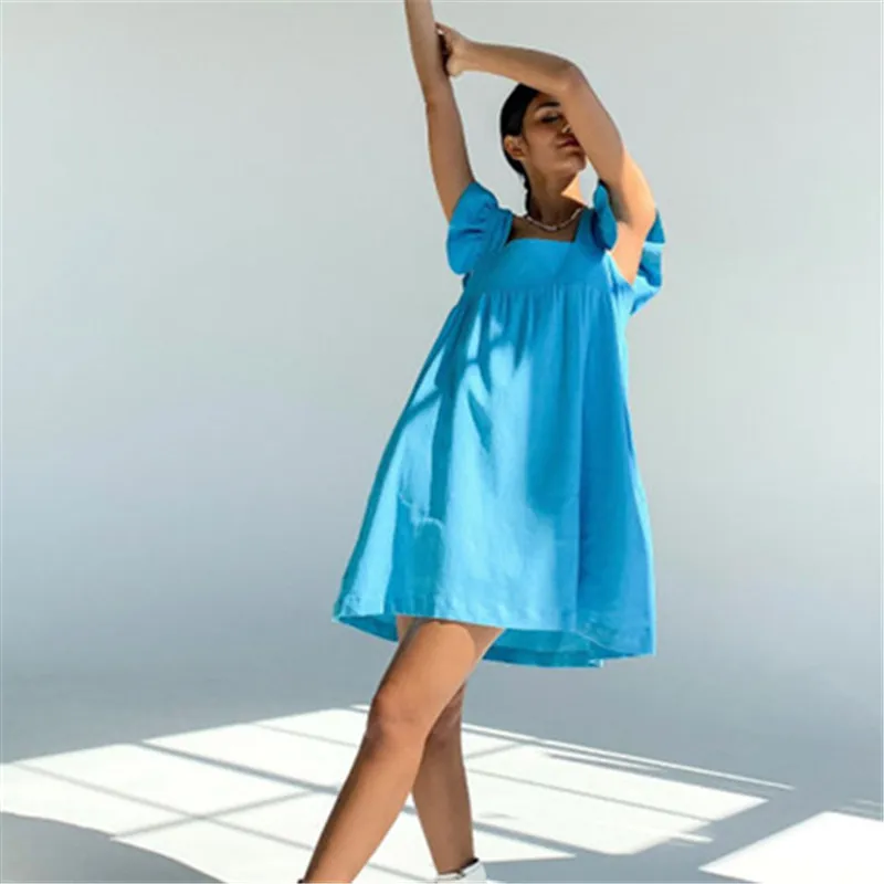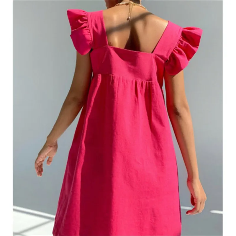 Платье Muiches женское повседневное с квадратным вырезом и рукавом-бабочкой милое льняное однотонное свободное мини-платье с открытой спиной и высокой талией лето платье летнее женское2021