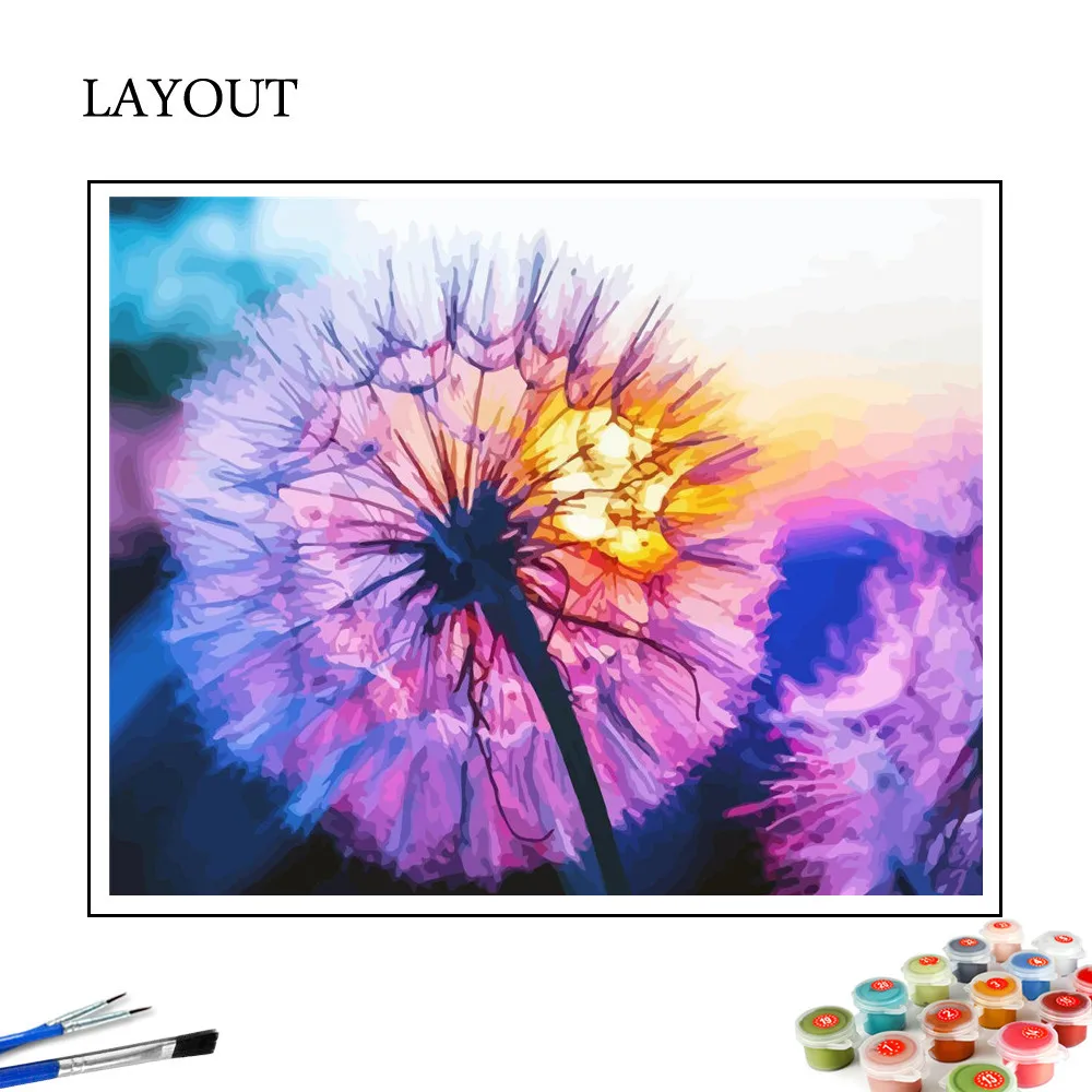 AZQSD DIY картина по номерам, принт в виде одуванчиков, ручная роспись Современное украшение на стену, живопись маслом по номерам цветочные наборы подарок ручной работы