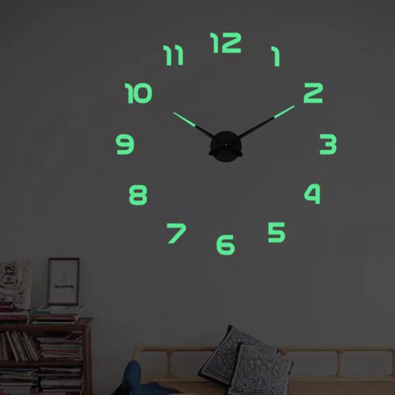 Светящиеся Настенные часы, большой бесшумный Кварцевый Будильник 3D сделай сам в современном стиле, акриловые зеркальные наклейки, 47 дюймов