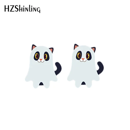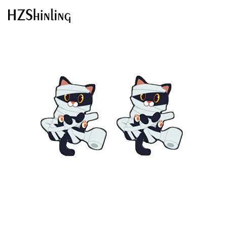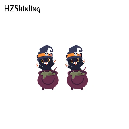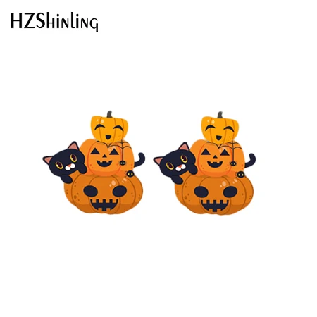 Хэллоуин, с рисунком в виде котиков, с рисунками тыквы серьги смолы серьги со вставками из эпоксидной смолы для женщин