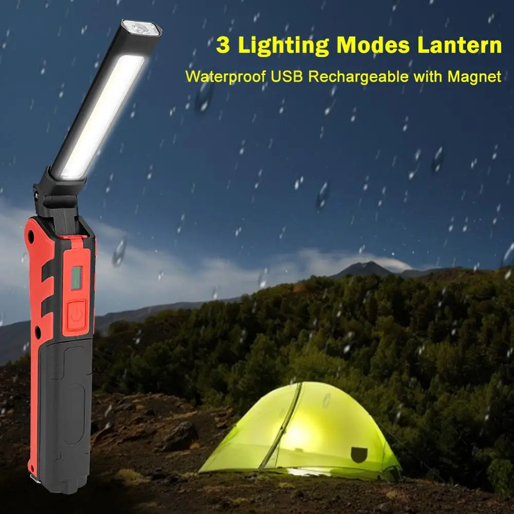 Магнитный рабочий свет фонарик для кемпинга, водонепроницаемый фонарь со встроенной зарядкой аккумулятора, COB Светодиодный фонарь с крючком для ремонта автомобиля