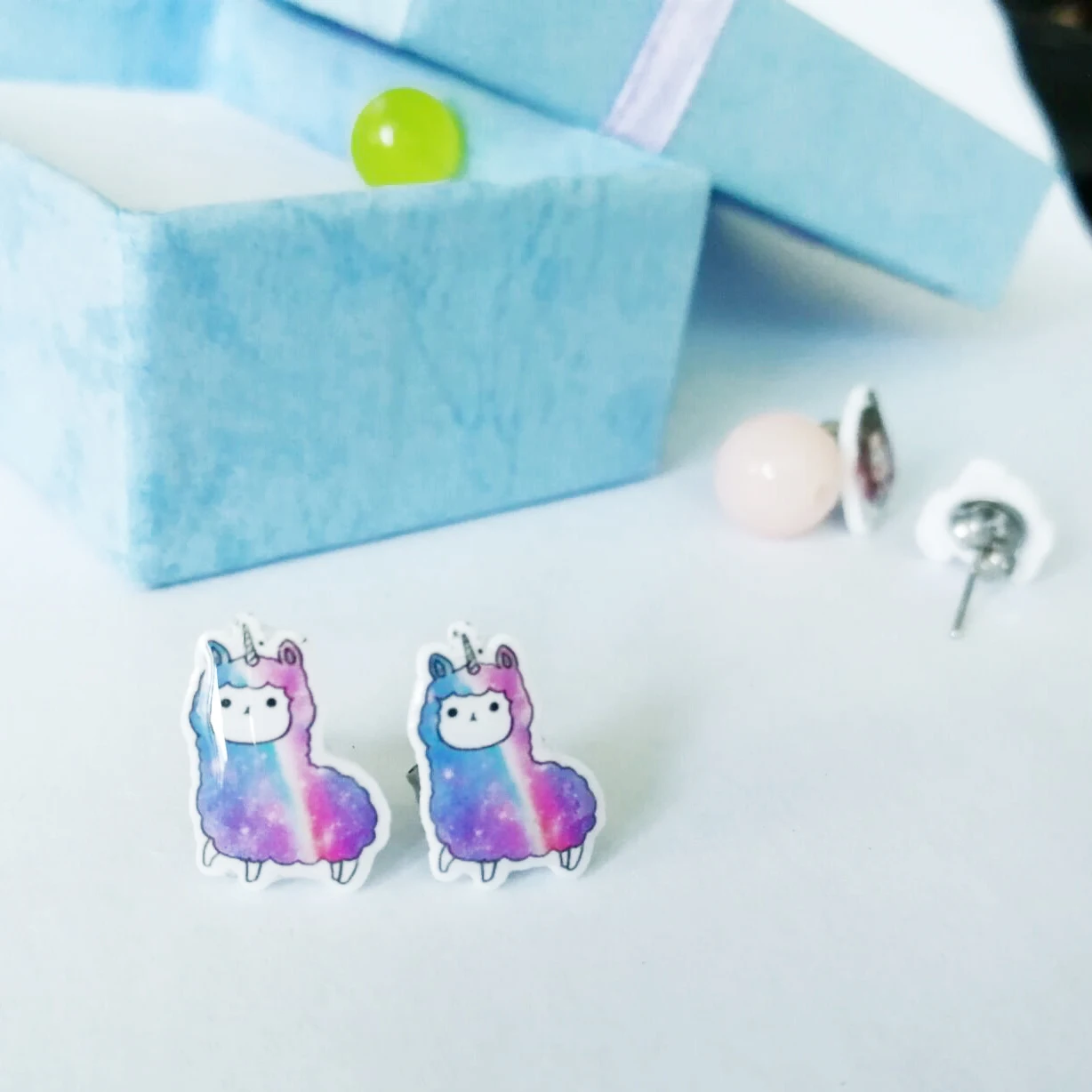 Новые милые животные Альпака из нержавеющей стали смолы серьги Сладкие аксессуары акриловые серьги эпоксидная смола
