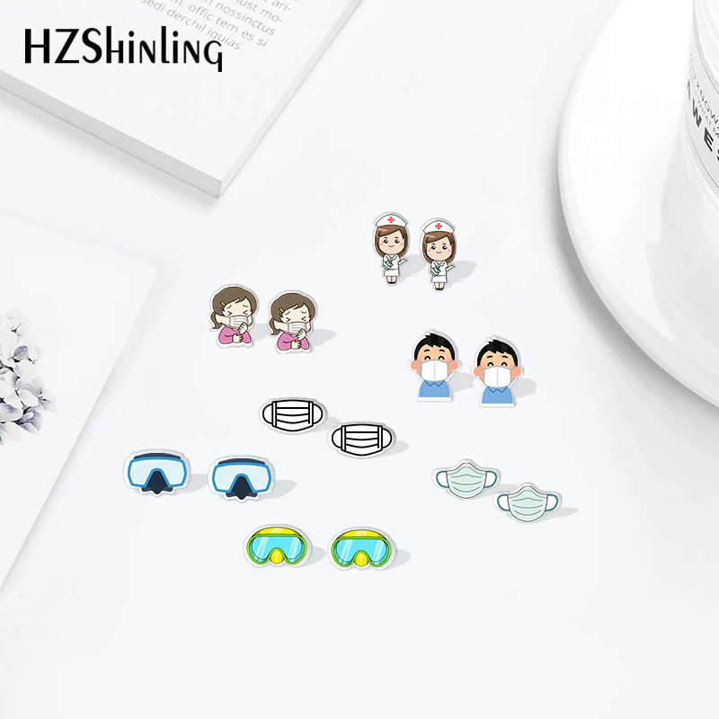 Новинка, модные серьги с мультяшным рисунком медсестры и доктора, милые ушные аксессуары из эпоксидной смолы