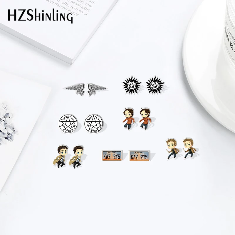 Сверхъестественный мультяшный узор из нержавеющей стали, аксессуары из смолы серьги со вставками из эпоксидной смолы