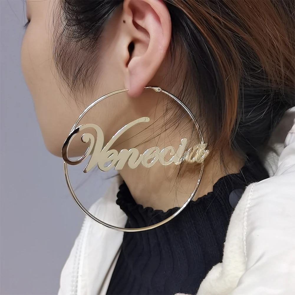 Серьги-кольца женские медные, 30-100 мм, с именем на заказ