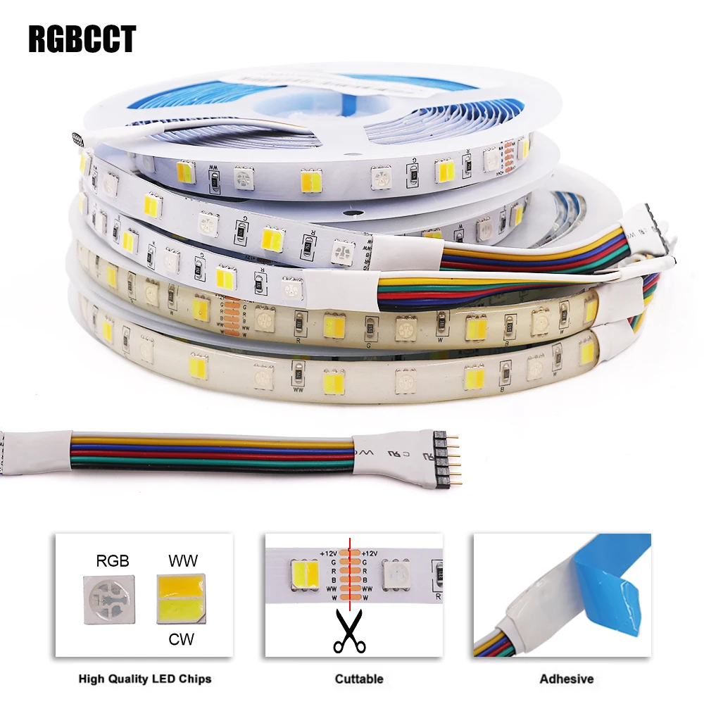 Светодиодная лента RGBCCT 5050 RGB, гибкая светильник аемая лента RGBW RGBWW холодного белого, теплого, синего, красного цвета, 5 м, 12 В, 60 светодиодов на метр