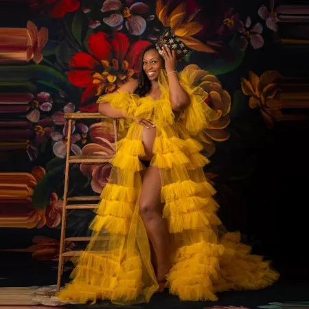 Элегантные тюлевые халаты для беременных со шлейфом, пышные рукава,...