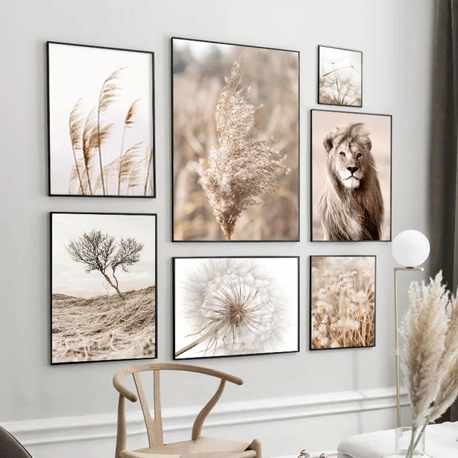 Лев Рид Одуванчик Цитата сухое дерево бежевый осенний пейзаж настенная живопись холст постеры и принты скандинавский стиль Декор для гостиной