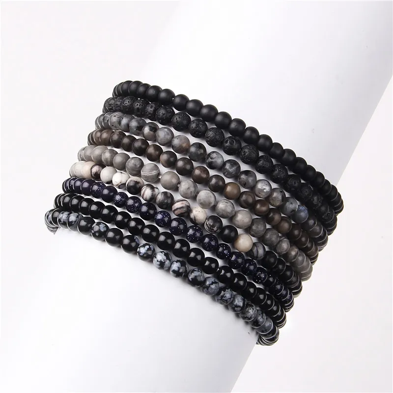 Новый черный браслет из бисера 4 мм, мини-браслет из лавового малахита и оникса с натуральным камнем для женщин и мужчин, крутой готический браслет, модные украшения