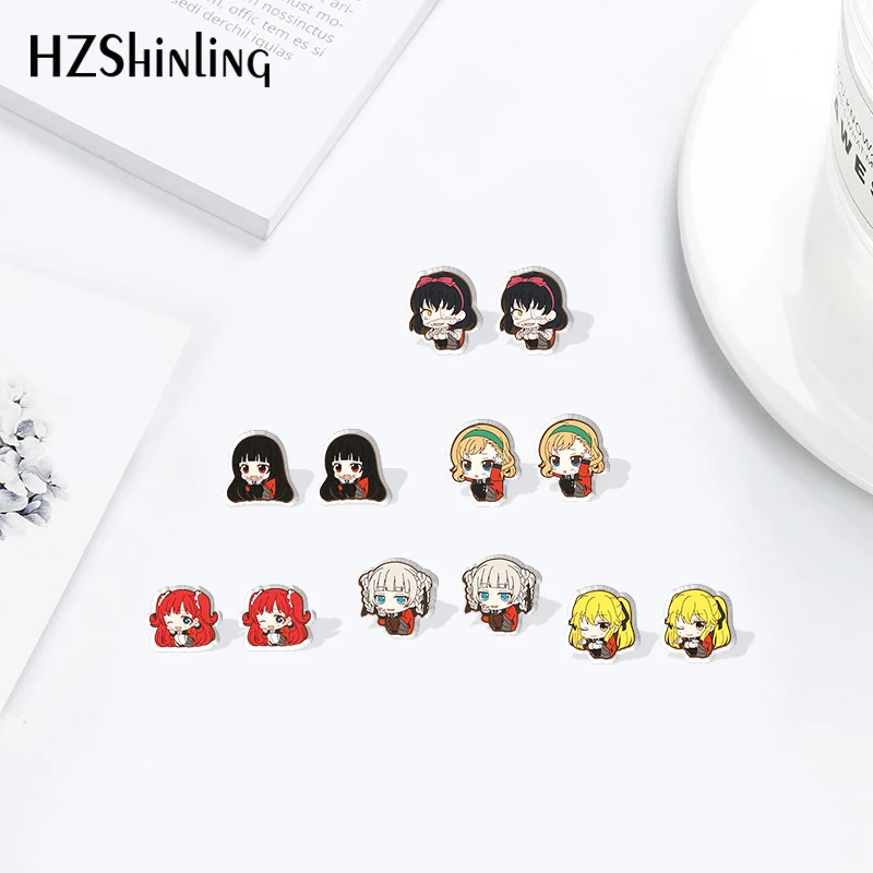 2021 мультфильм аниме Kakegurui шаблон из нержавеющей стали ушные изделия из смолы серьги со вставками из эпоксидной смолы аксессуары