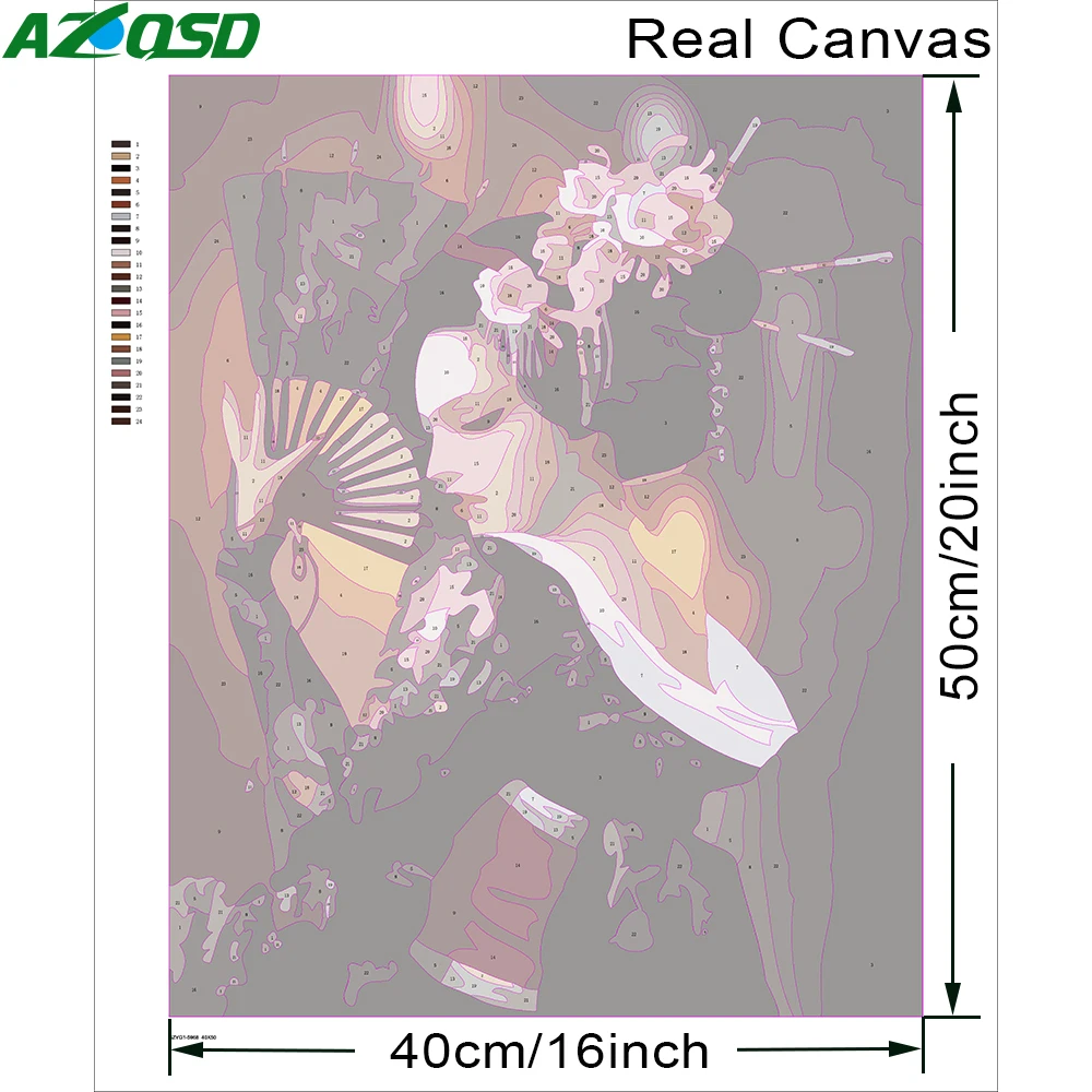 AZQSD Раскраска по номерам Японская женщина акриловый уникальный подарок живопись по номерам для взрослых портрет наборы ручная роспись Декор