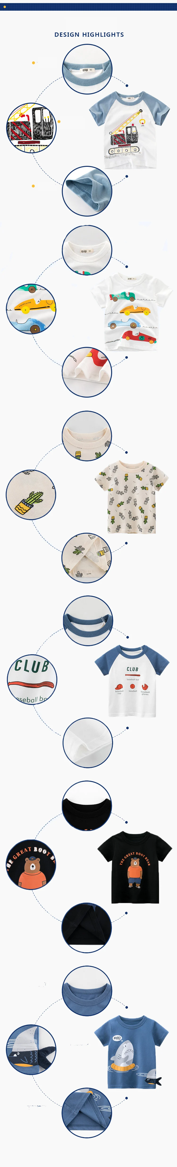 Летняя футболка для маленьких мальчиков с мультипликационным принто...