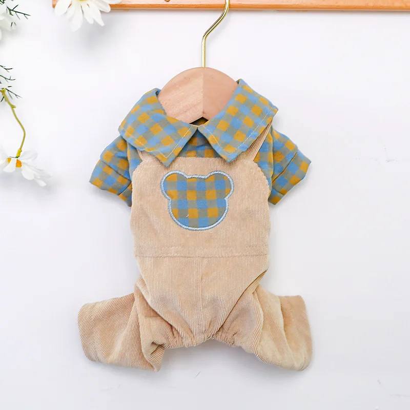 Клетчатая рубашка с милым медведем Одежда для собак розовое зеленое летнее весеннее пальто комбинезон для домашних животных Мопсов Чихуахуа аксессуары для щенков животных