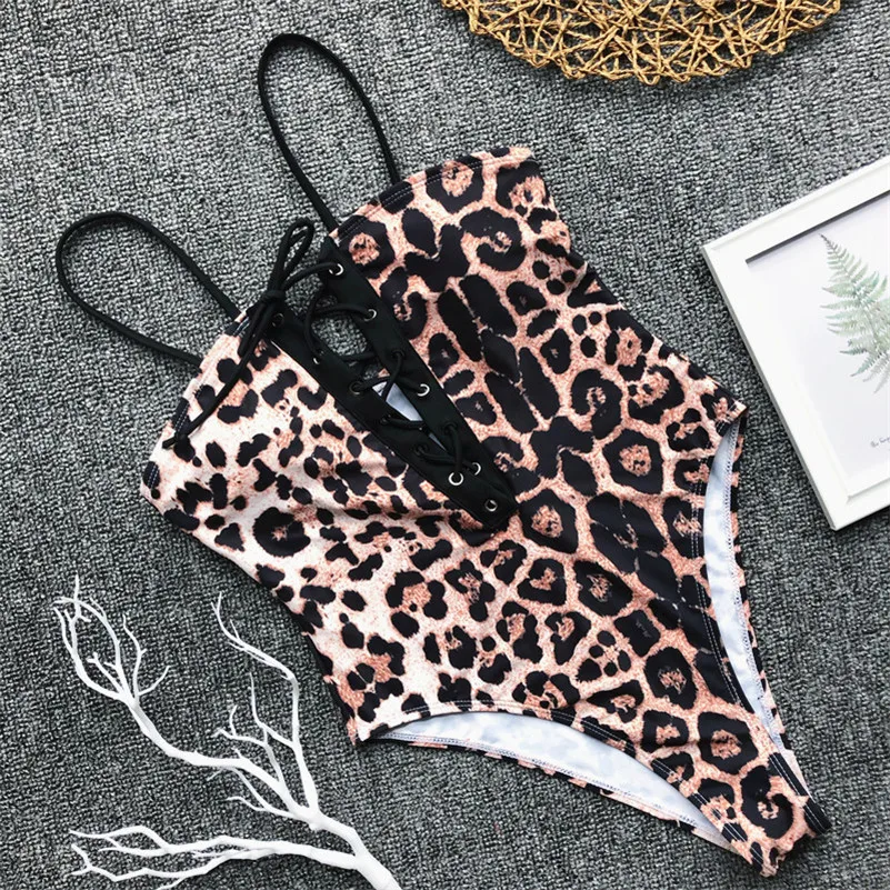 Женский купальник, купальник, сексуальное бикини с эффектом пуш-ап, купальный костюм с V-образным вырезом, купальный костюм, Леопардовый бандажный купальник, женский модный купальник