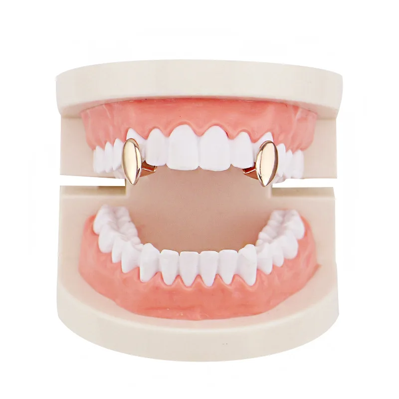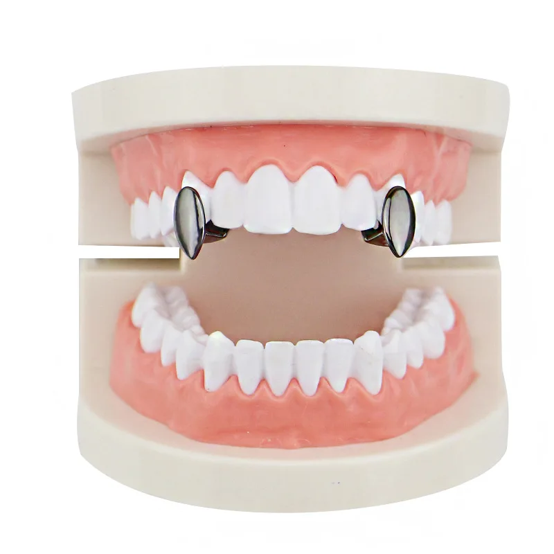 2 шт.компл. один в стиле хип-хоп цвета: золотистый, серебристый Цвет декоративные Зубные коронки для Для женщин мужчин Топ вампирские клыки зуб шапки одного украшения для зубов
