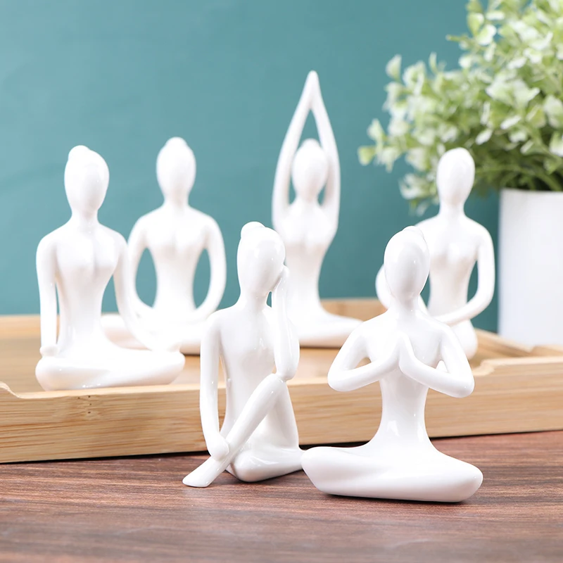 1 шт., 6 стилей, абстрактное искусство, керамическая фигурка позы йоги, фарфоровая Женская фигурка, домашняя Йога, студийный декор, орнамент