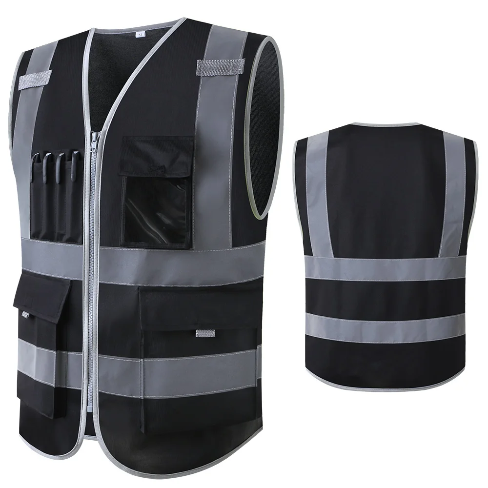 Рабочее жилет, безопасный ночной светоотражающий жилет с логотипом на заказ, рабочая одежда с высокой видимостью, куртка, черный жилет, женский и мужской жилет, жилет, Рабочая Ткань