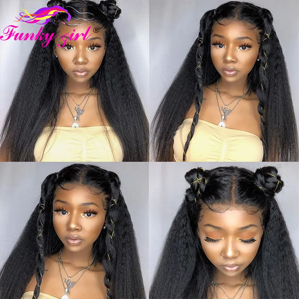 Парик 30 дюймов, 13x4, бразильские волосы без повреждений, курчавые прямые передние парики из человеческих волос, парики Yaki 4x4 на сетке, предварительно выщипанные T-образные парики на сетке