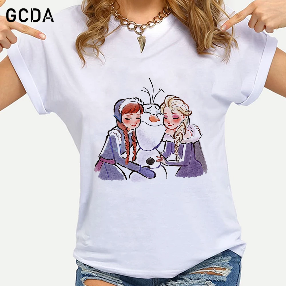 Футболка женская, с принтом Харадзюку, Disney, Холодное сердце, снеговик, Олаф, Эльза, Анна