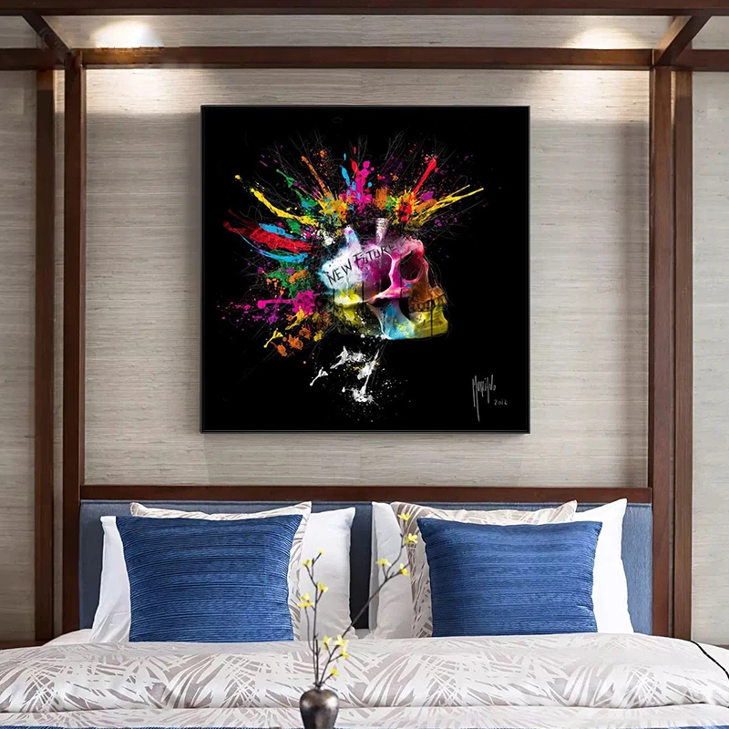 Абстрактный граффити, искусство, красочный череп, холст, живопись, ...