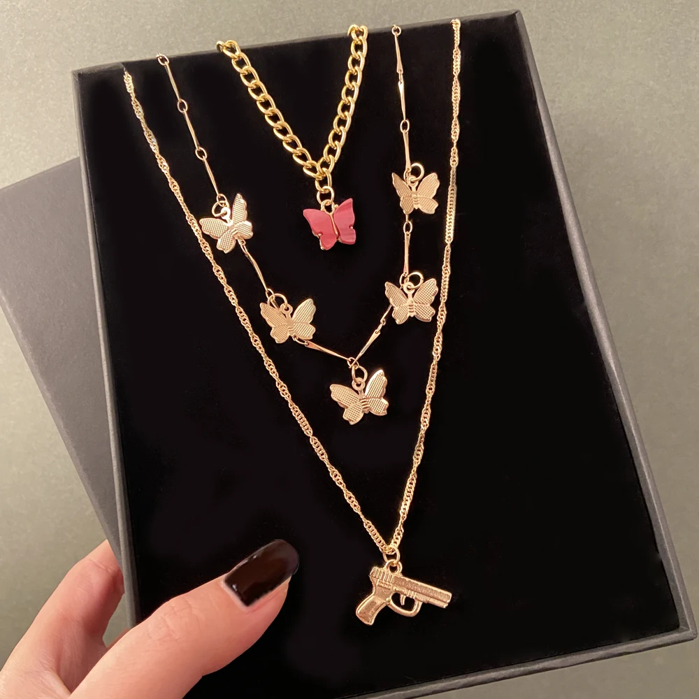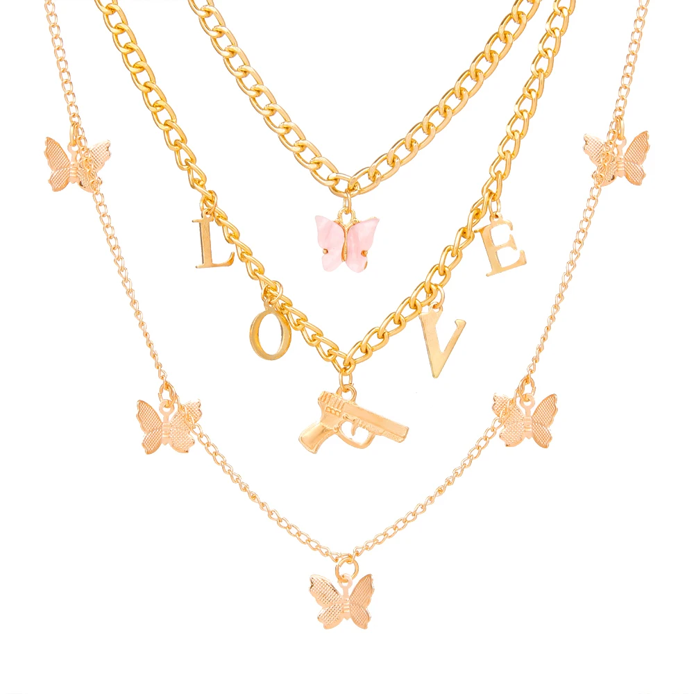 VKME винтажное многослойное бабочка подвески цепочка ожерелье для ж...