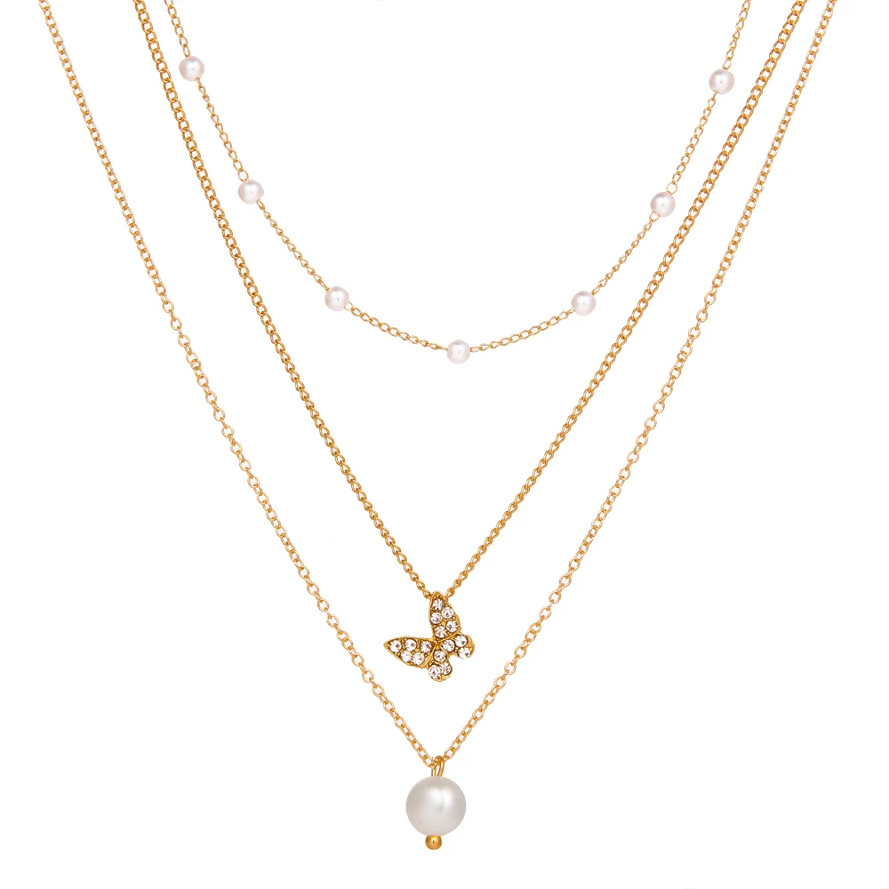 Ожерелье женское многослойное с жемчужной подвеской в виде бабочки