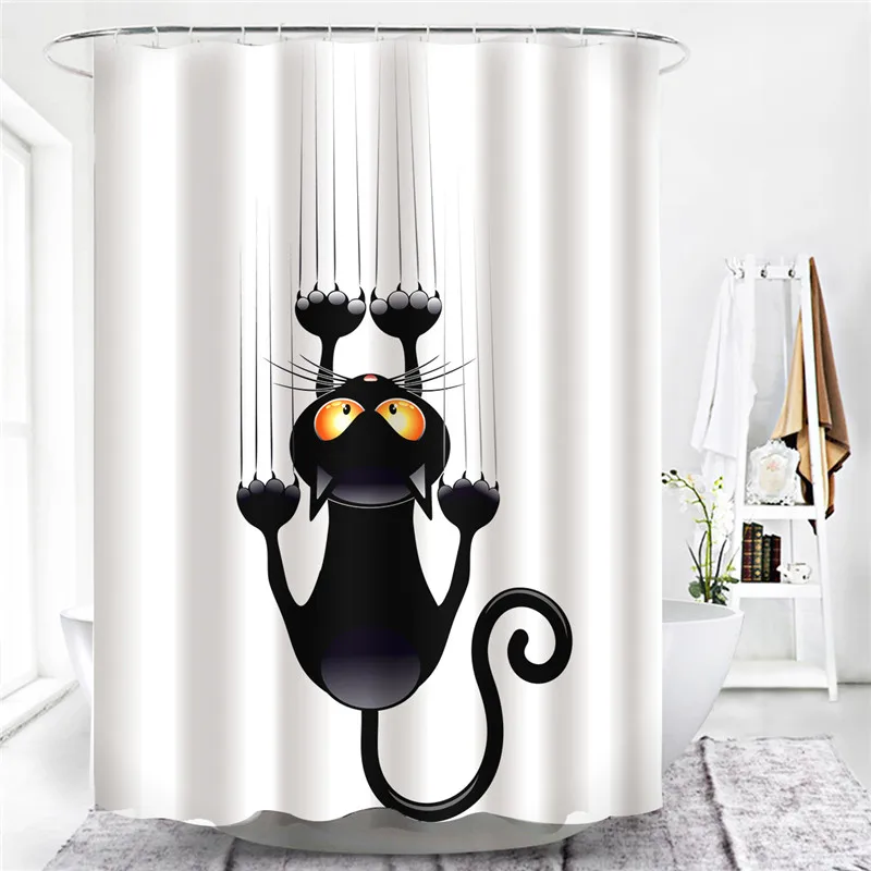 Занавеска для душа, из полиэстера, с принтом кота, водонепроницаемая