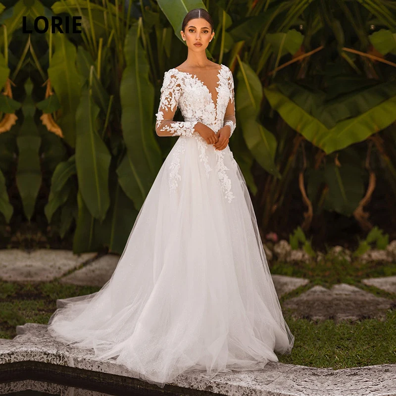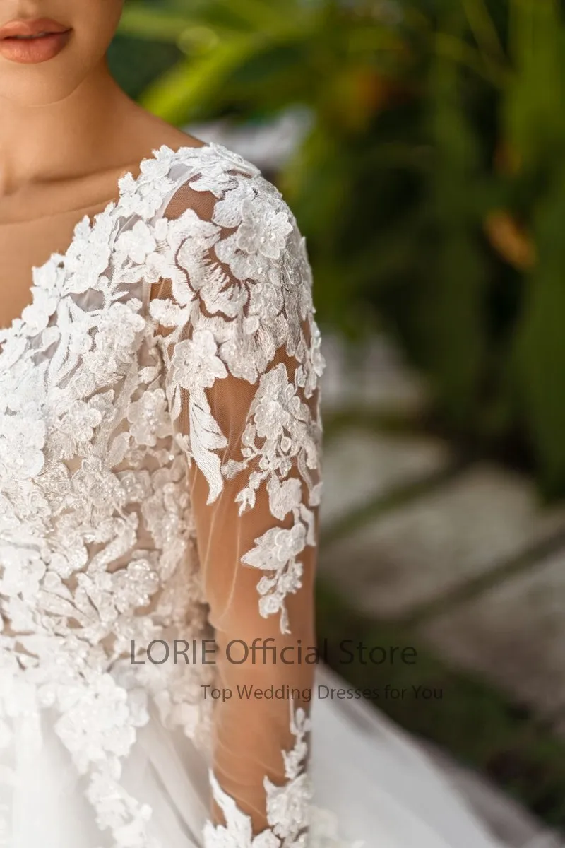 Свадебные платья LORIE в стиле бохо, кружевное платье с глубоким круглым вырезом, длинными рукавами и разрезом по бокам, цвет слоновой кости