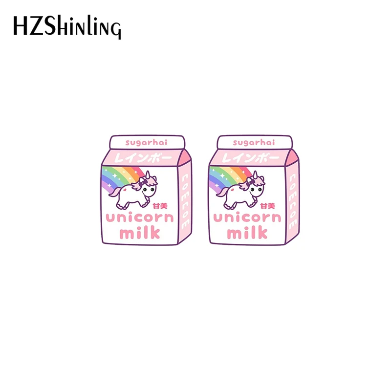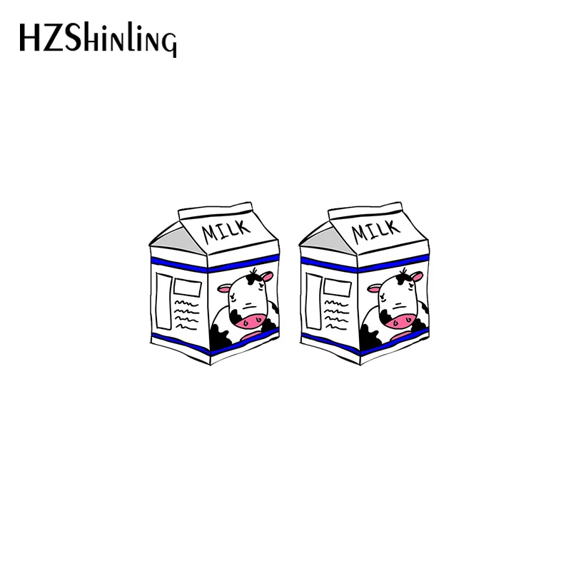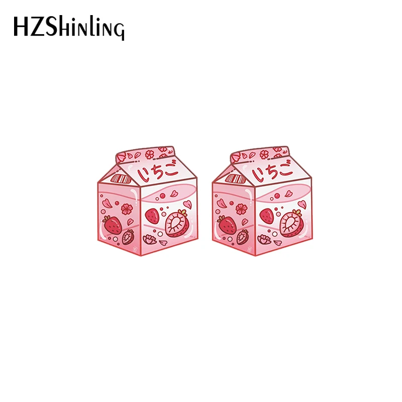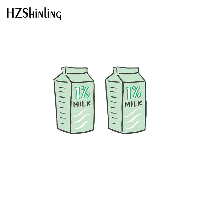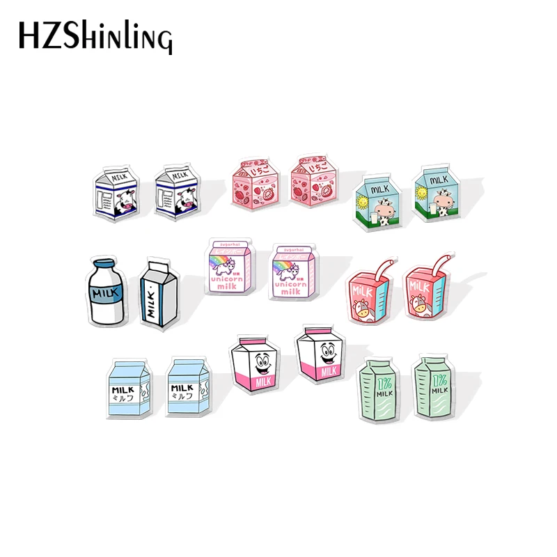 Акриловые серьги-гвоздики с изображением милых десертов, молочных к...