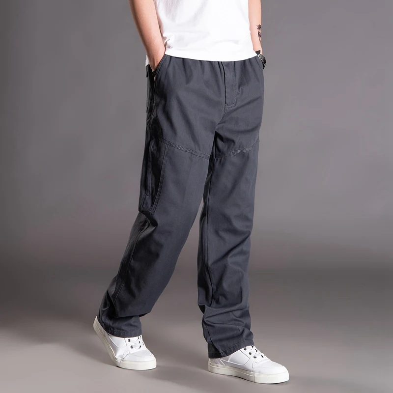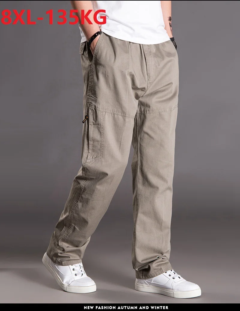 Брюки-карго мужские на молнии, хлопковые прямые свободные штаны, большие размеры 6XL 7XL 8XL, серые, весна-лето